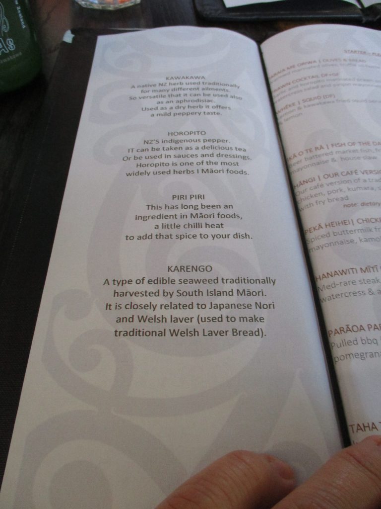 Menu for our meal after the tour