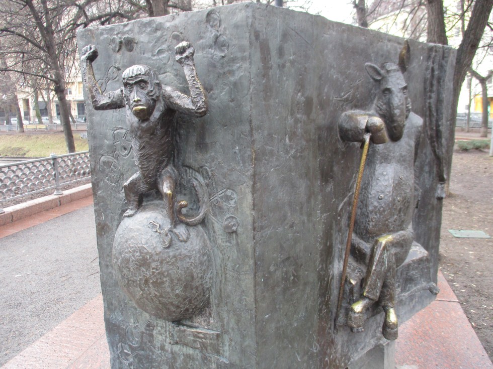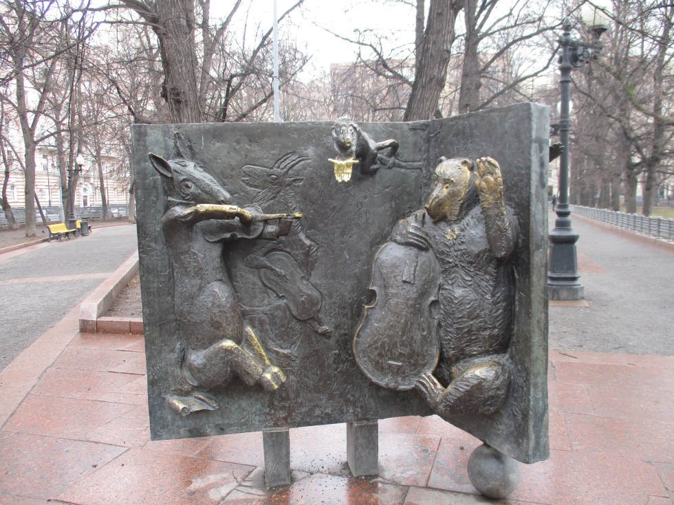 Moscow’s Patriarch Pond and its park are the setting for Bulgakov’s opening of “Master and Margarita” (affiliate link). It also pays homage to Russian Fablist Ivan Krilov. Check out our photos of Bulgakov’s home.